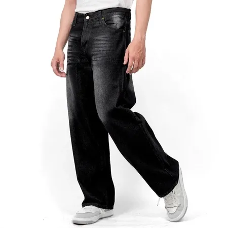 Gizmo - Celana Jeans Wide Leg Wisker Lebar Gombrong Skena Black Wisker pria loose fit jumbo big keren Bahan Denim