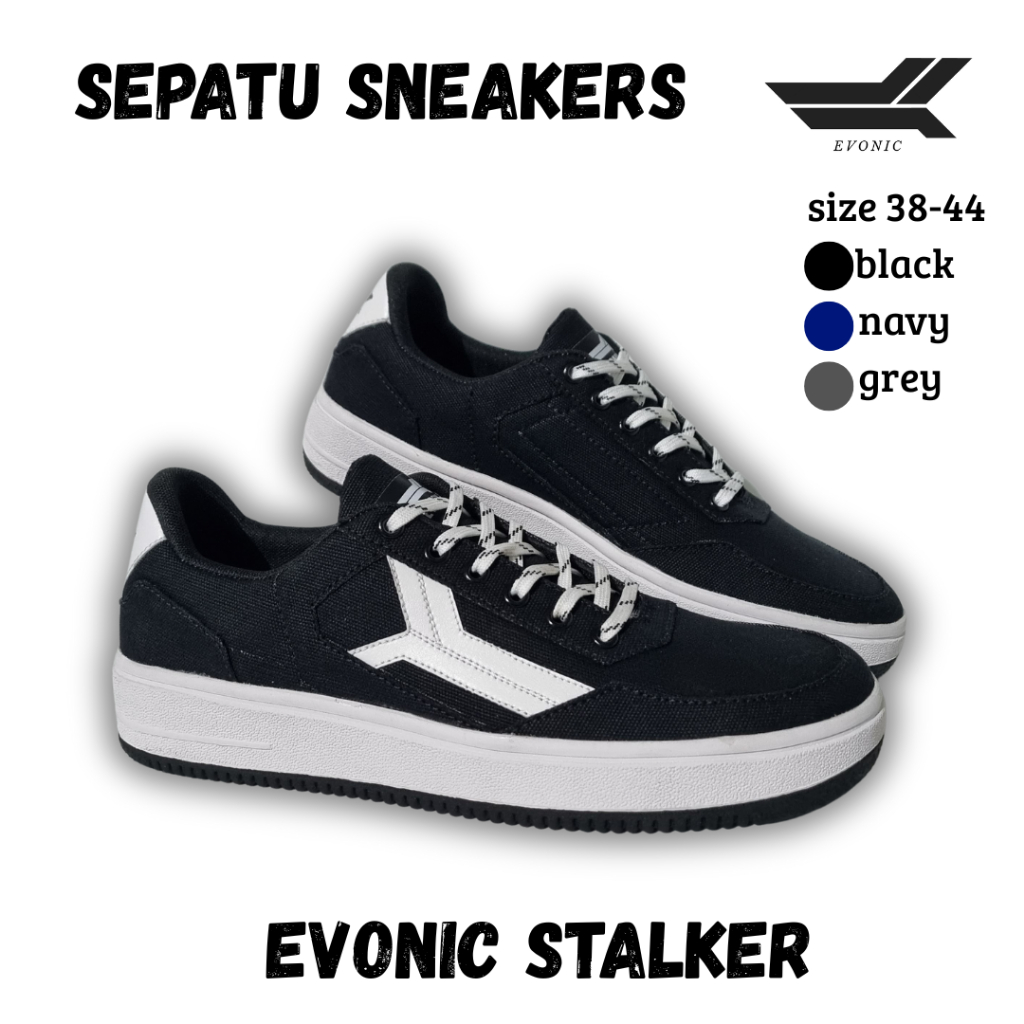 sepatu sneakers evonic stalker, sepatu sekolah dan kasual pria style hitam