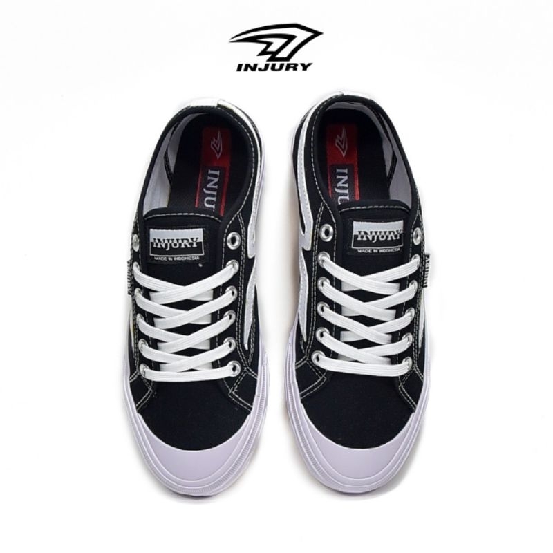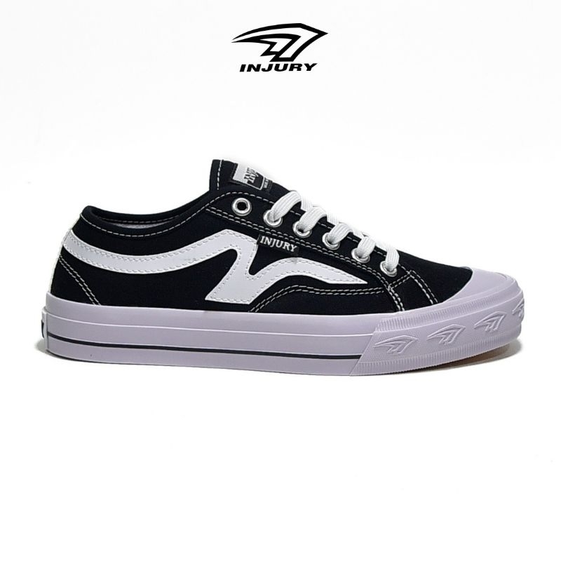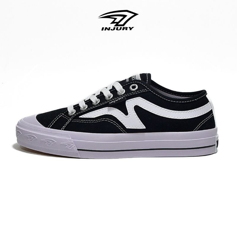 Injury - Sepatu Sekolah Pria Wanita Sepatu Sneakers Unisex Injury Volitans Hitam Putih