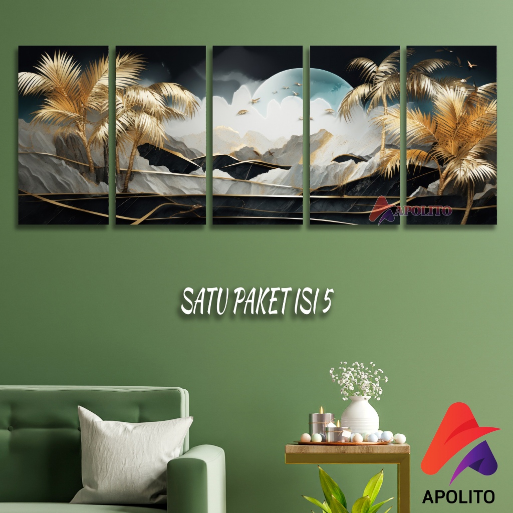 HIASAN DINDING 3D TROPICAL LEAVES SATU PAKET ISI 5 (15X30CM) WALL DECOR PAJANGAN DINDING RUMAH