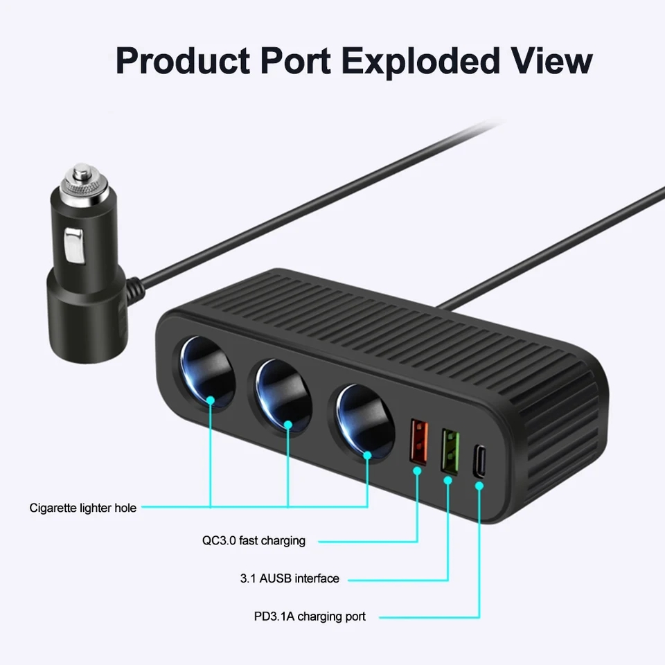 Socket Lighter Mobil Extension 120W USB QC3.0 Fast Charger Splitter Cigarette