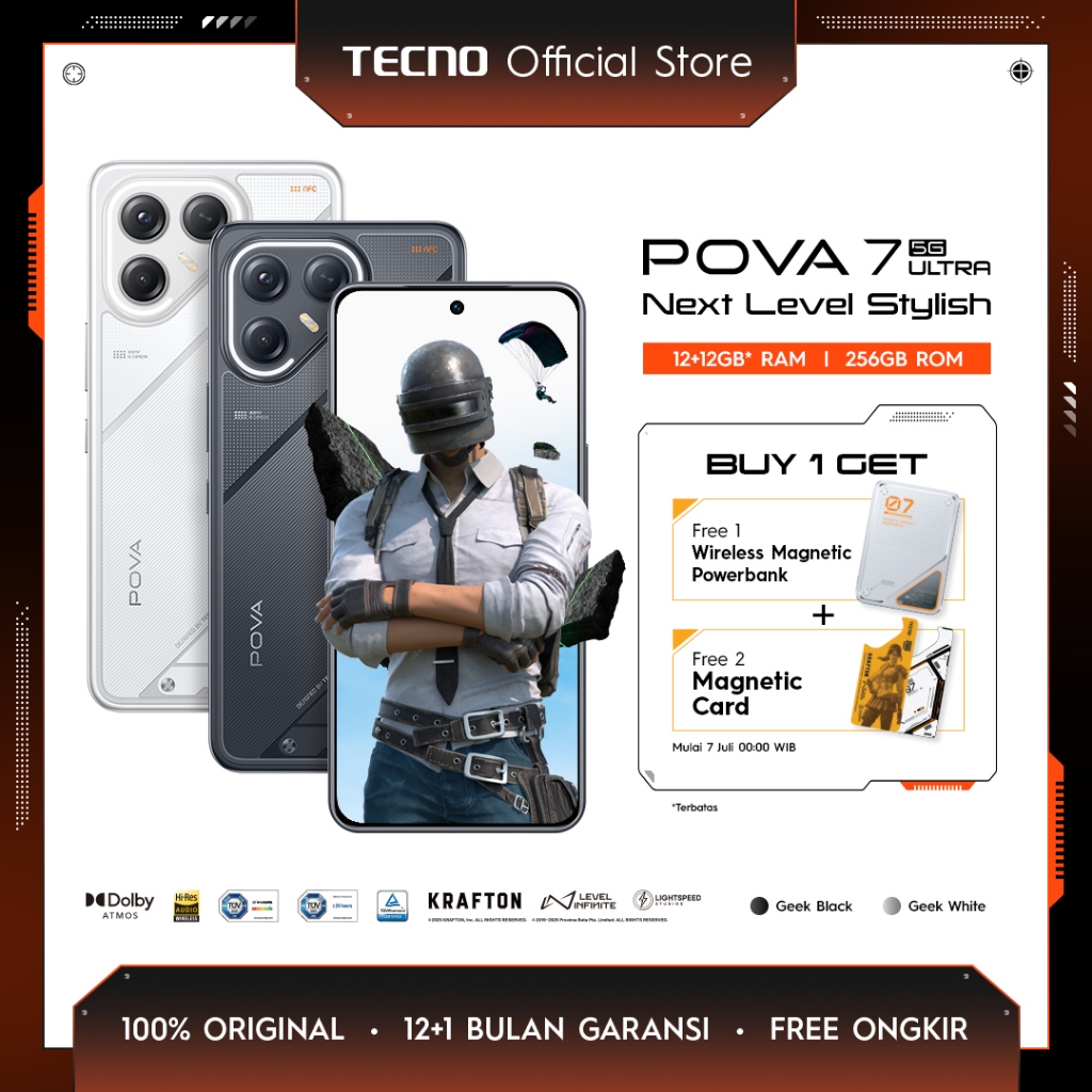 HP TECNO POVA 7 Ultra 5G RAM 24GB (12+12GB) ROM 256GB Baterai 6000mAh Kamera 108MP + 8MP Ultra Wide 70W Fast Charge 30W