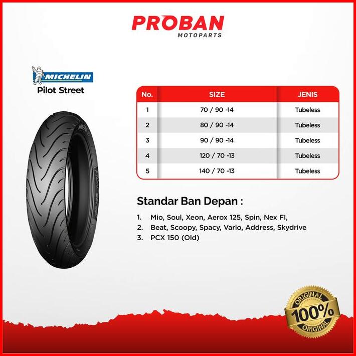 Michelin Tl Pilot Street 120 70-17 Ban Motor Tubeless