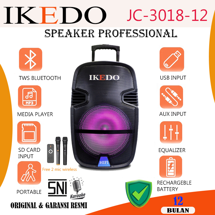 (FREE FACKING KAYU) SPEAKER MURAH BLUETOOTH PORTABLE 12 INCH IKEDO JC-3018-12