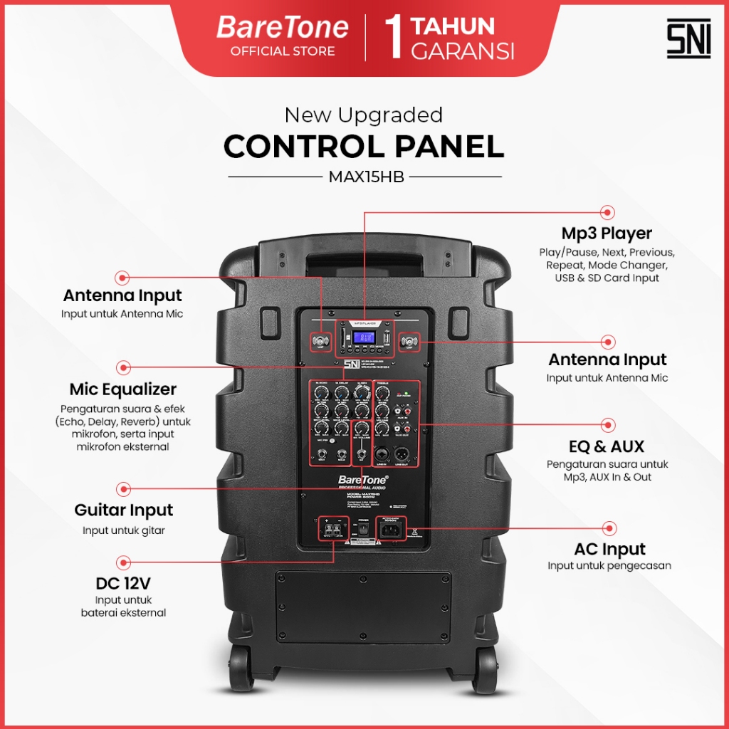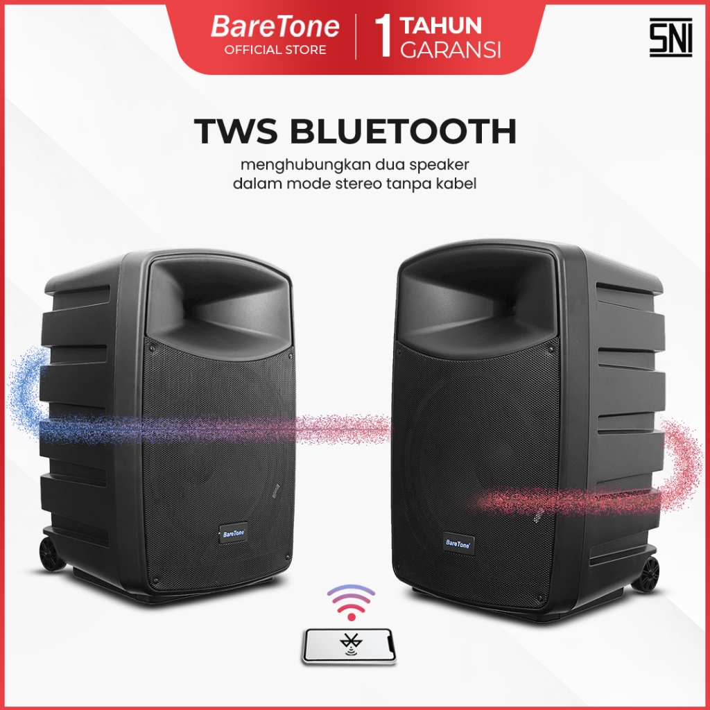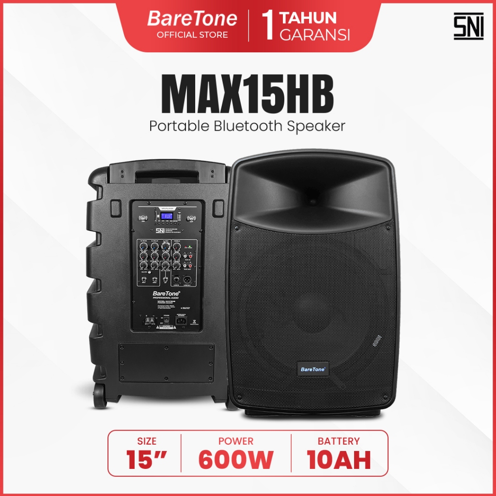 BareTone Speaker Portable MAX15HB Speaker Bluetooth 15 Inch Mini Portable Support Micro SD & USB -Garansi Resmi 1 Tahun