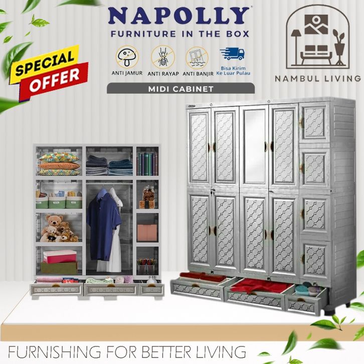 LEMARI PLASTIK NAPOLLY DC ION 5 PINTU 3 4 SUSUN JUMO GANTUNBG BAJU PAKAIAN MODERN BERKUALITAS 2025/2024 CLUB BEST SELLER