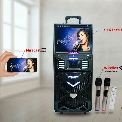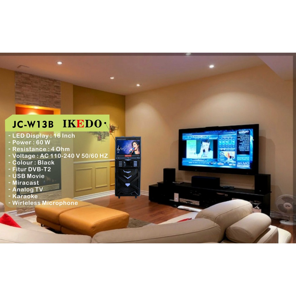 IKEDO Speaker Aktif 12 inch Layar LED 16 inch TV Digital Miracast Video Karaoke Player JC-W13B (Gratis Packing Kayu)