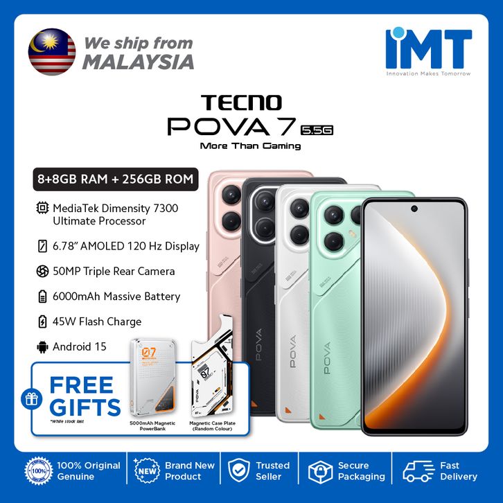 Tecno Pova 7 5G Smartphone | Mediatek Dimensity 7300 | Paparan IPS LCD 6.78" | Dwi Kamera 50MP