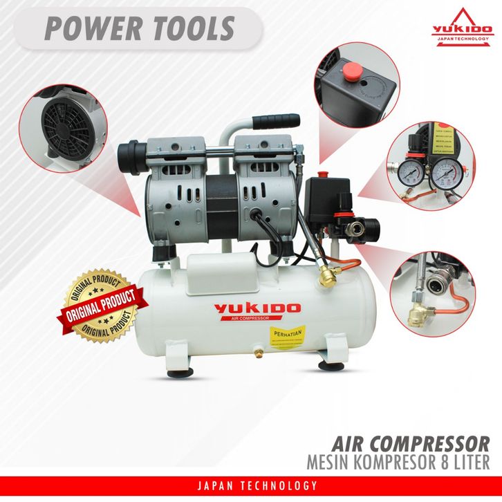 paket kompresor listrik Lakoni imola 75 Oilless Silent 3/4 0.75 HP 9 Liter OL07-09 free coupler 2 cabang
