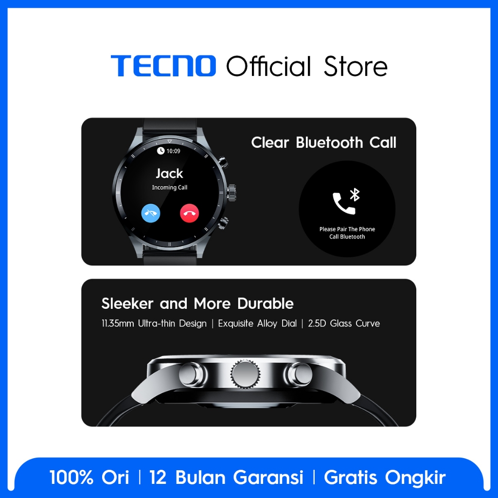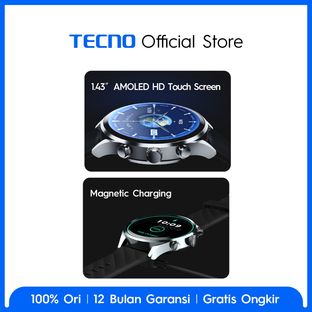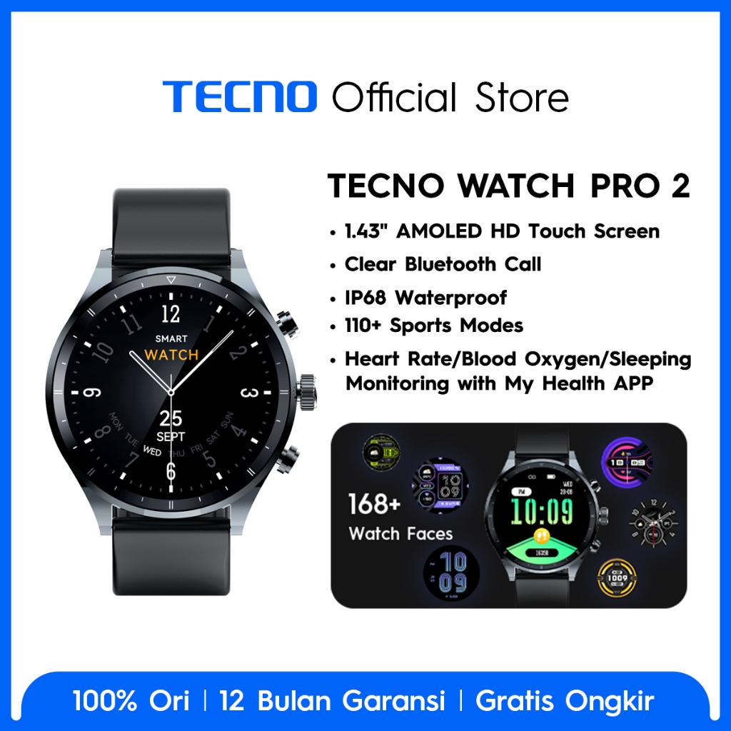 TECNO Watch Pro 2 Smartwatch Bluetooth Call 1.43" AMOLED Layar IP68 Waterproof Health Care