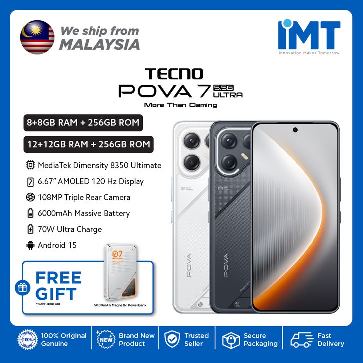 Tecno Pova 7 Ultra 5G Smartphone | Mediatek Dimensity 8350 Ultimate | Paparan AMOLED 6.67" | Dwi Kamera 108MP