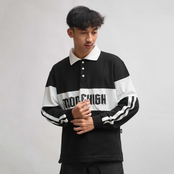 Baju Panjang Pria Kaos Pria Lengan Panjang Middlehigh Vintage Rugby Polo Shirt Rims Black