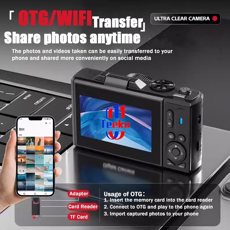Kamera Digital Wifi Video 4K 18X Digital Zoom Dengan Dukungan Selfie Koneksi WIFI【Dengan Kartu 64GB】TEEKA 75MP