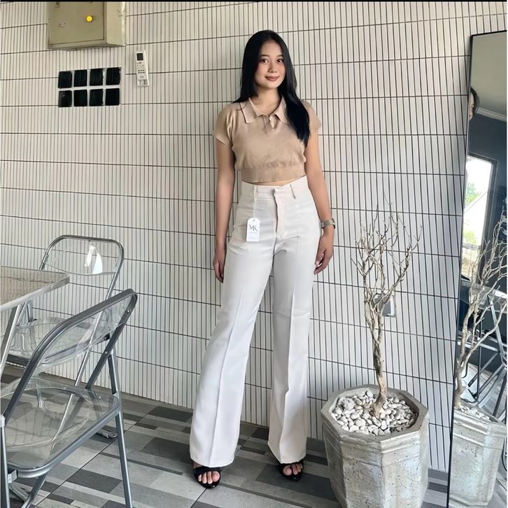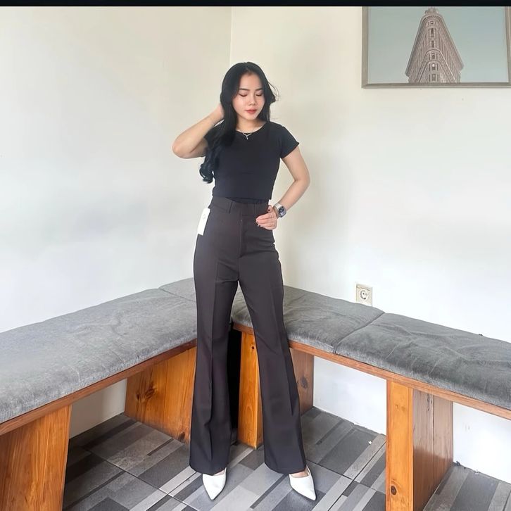 Cutbray Highwaist Pants Celana Cutbray Pinggang Highwaist Bahan Melar Semiwoll Wanita Premium Cutbray Wanita Kekinian