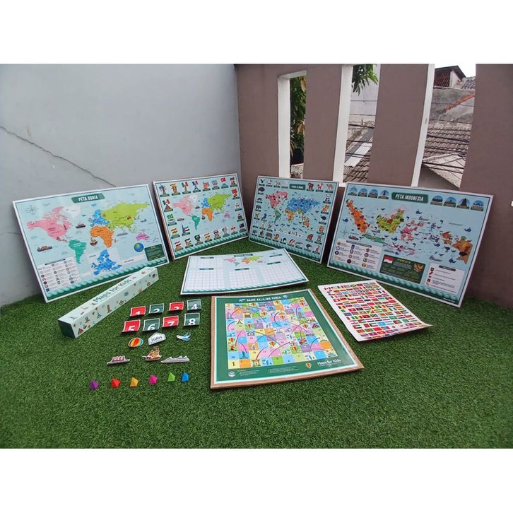 TERLARIS PETA DUNIA Bonus PETA INDONESIA Map for Kids Original| Surury Agency usahmn