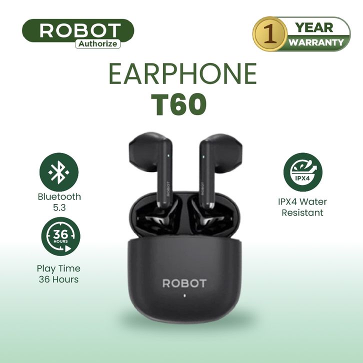 Robot T60 TWS Earphone Airbuds Wireless TWS Bluetooth Original- Garansi 1 Tahun