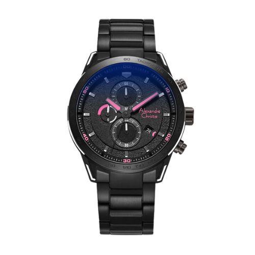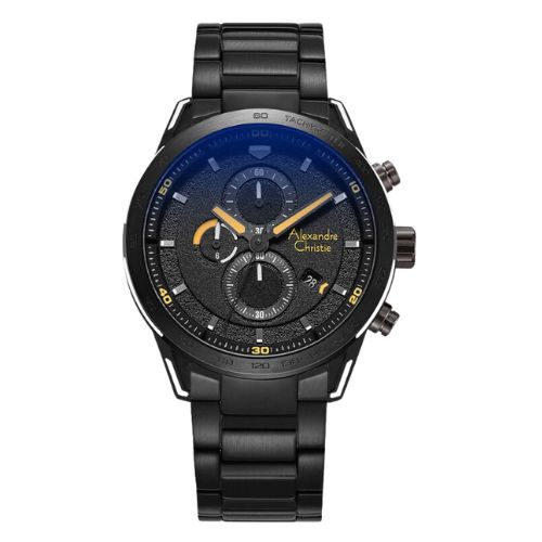 Jam Tangan Alexandre Christie Chronograph Pria 6647 Stainless Steel Black Original . Resmi