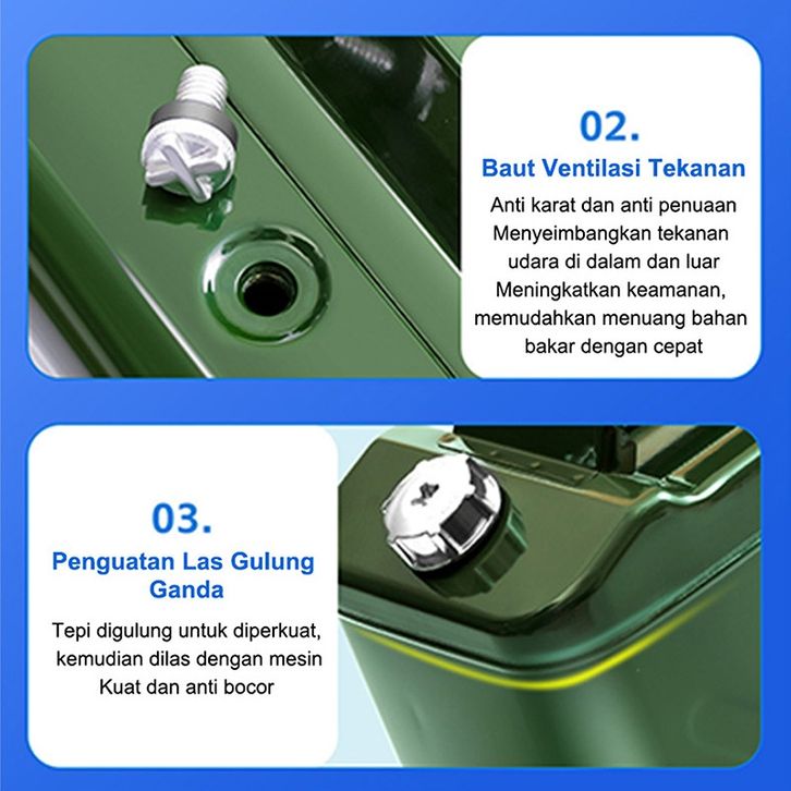 JERRYCAN Jerigen Besi Jerrycan Bensin Solar 10/20/30 Liter Tangki Oli Minyak Plus selang