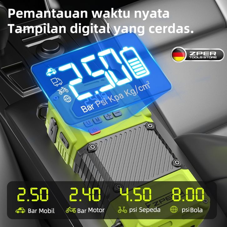 ZPER Pompa Ban Mobil Elektrik Portable Pompa Angin Ban Motor Jumper Aki Mobil Charger Aki