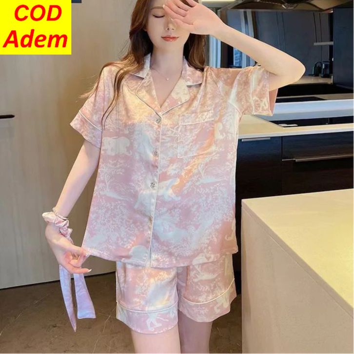 Baju Tidur Wanita Kekinian Piyama Pendek Rayon Tie Dye Adem Dan Lembut Setelan Rumah Korea 2025