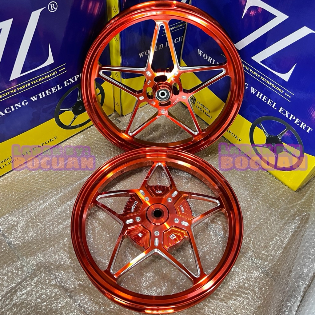 VELG ZL CNC FIVE STAR ELITE YAMAHA HONDA RING 14 VARIO 110 125 150 MIO SMILE BEAT NEW SCOOPY GENIO SCOOPY SPACY BIRU HITAM ORANGE SILVER CANDY TONE VELG CNC ANODIZED PELEK RODA MOTOR PALANG 5 BINTANG