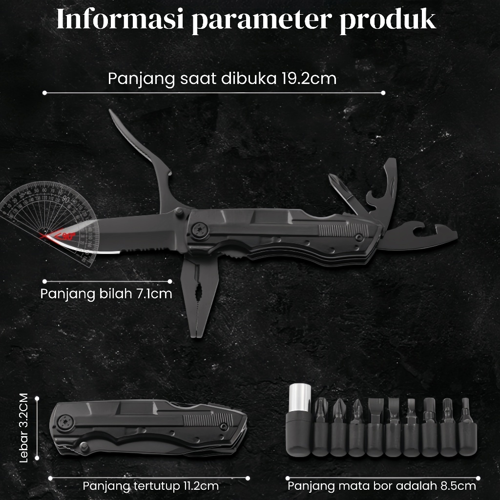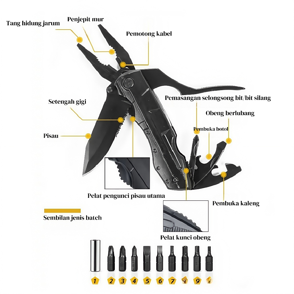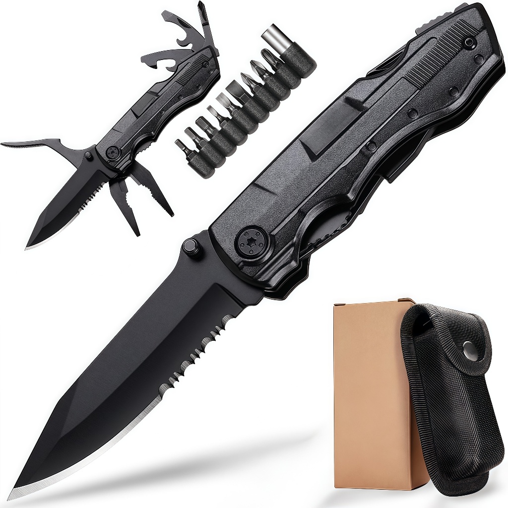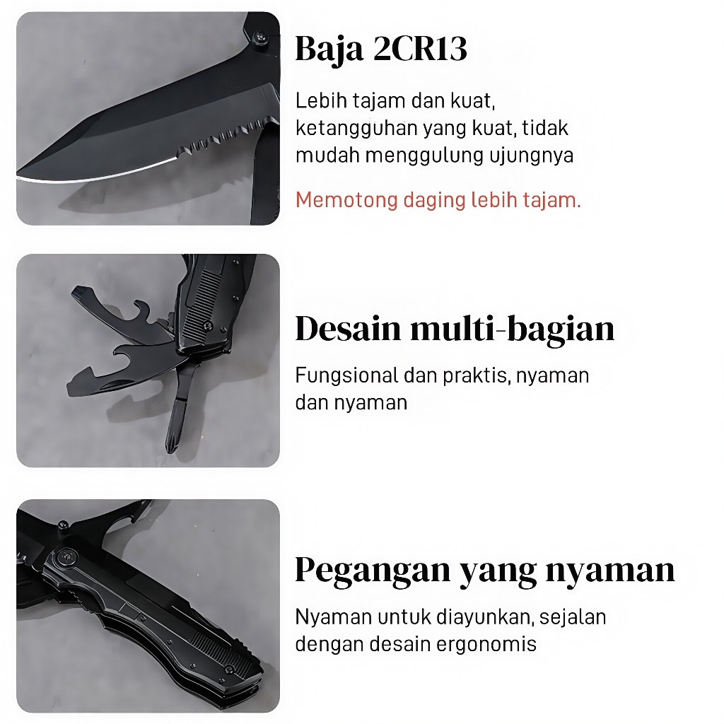 KNIFEZER Pisau Lipat Folding saku EDC Pocket Knife Multifungsi 10 in 1 Stainless pisau stainless steel Survival Tool Mini Portable Knife Camping