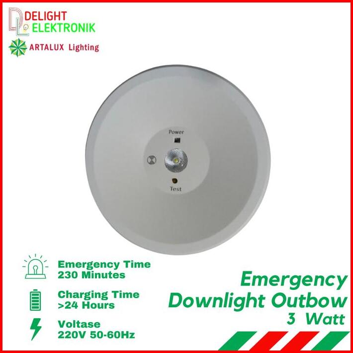 Lampu Emergency Downlight Outbow Artalux Putih 3w Watt