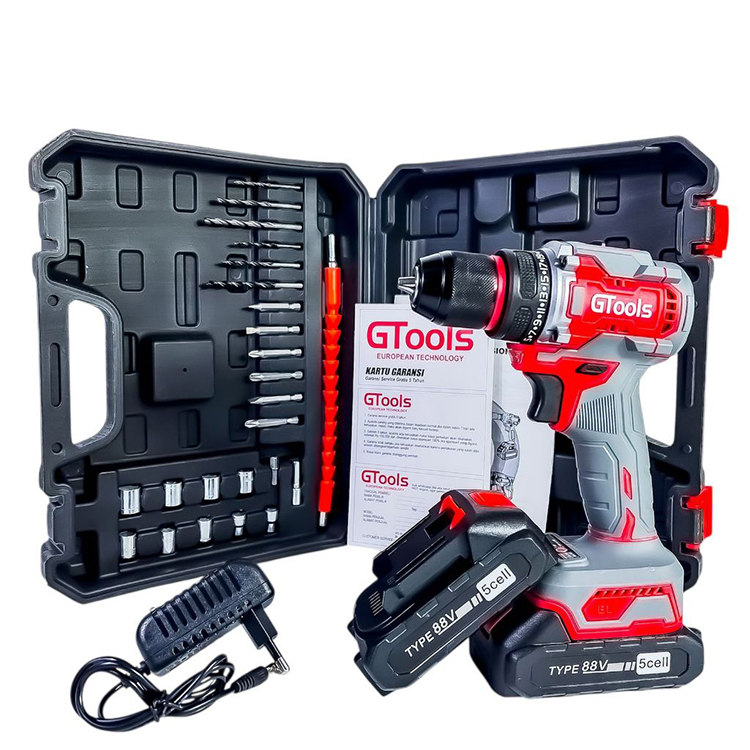 PROMO BOR CORDLESS GTOOLS GT21+ PLUS 10mm keyless auto lock 2baterai 88vf lxt besi kayu driver