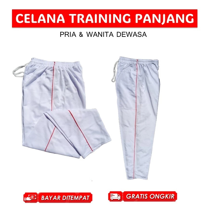 Celana Training Panjang Pria Wanita Merah Putih Strip 1 untuk Olahraga & Santai