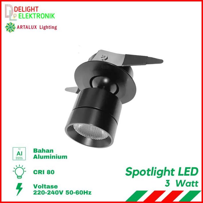 Downlight Spotlight Lampu Spot Led Artalux Hitam 3w Watt