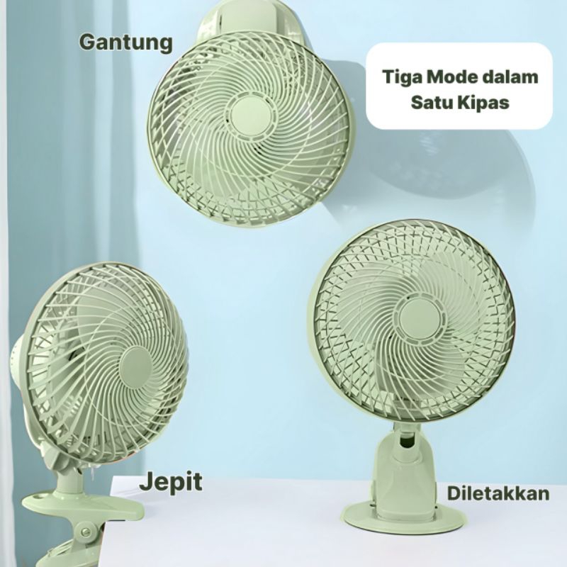 Kipas Angin Multi Fungsi Jepit+Meja Duduk+Dinding Tembok Muter Kiri Kanan Ukuran 8 Inch