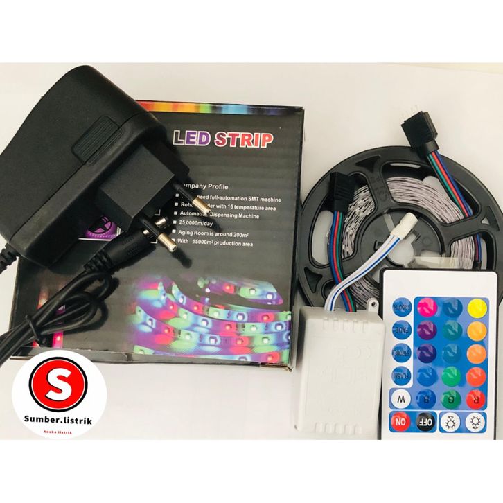 LAMPU LED STRIP 3528 2835 RGB WATERPROOF WARNA WARNI IP44 5M AC 220V + ADAPTOR + REMOTE 3528