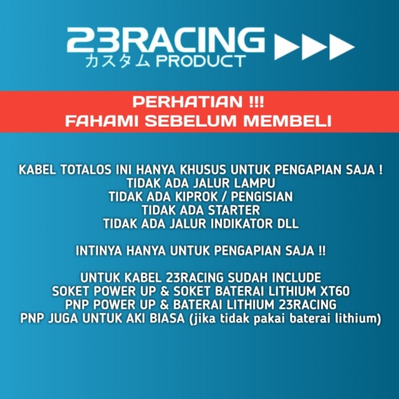 PAKET POWER UP & KABEL TOTALOS PERAK - MIO JUPITER VEGA R - BEAT KARBU - NINJA R/RR - KHARISMA - SATRIA FU - KLX D'TRACKER - SHOGUN - MEGAPRO GL PRO - JUPITER MX KARBU