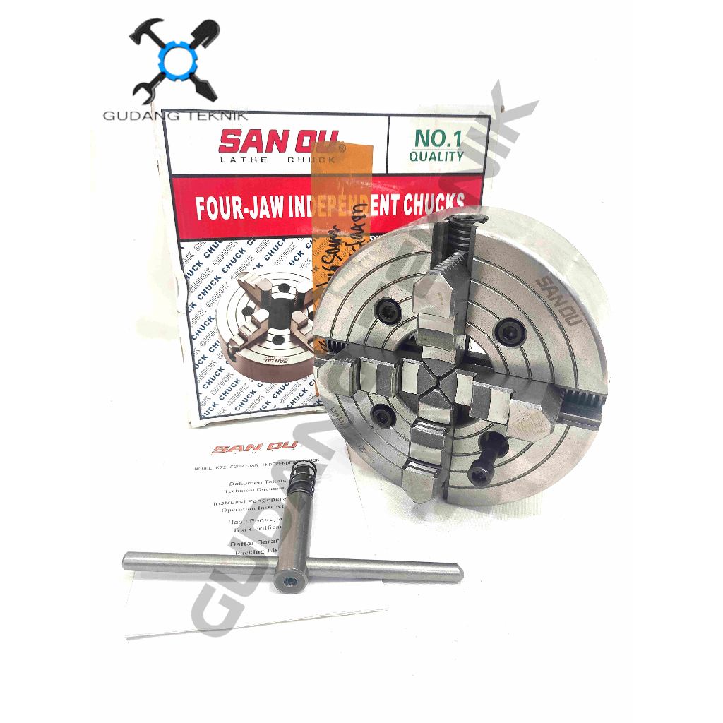 Catok Bubut Kaki 4 5" 10" SAN OU K72-125 K72-250 / Chuck Kepala Mesin Bubut 5 10 Inch Claw Jaw 4 Bubut K72 125 250 SAN