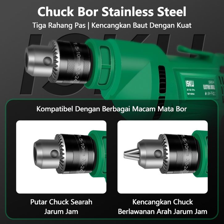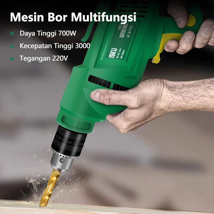 ISKU Mesin Bor Listrik Bolak Bali 700W 220V Hand Electric Drill Berlaku untuk 1.5-10mm Mata Bor/Mesin Bor
