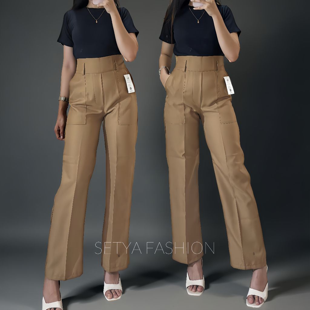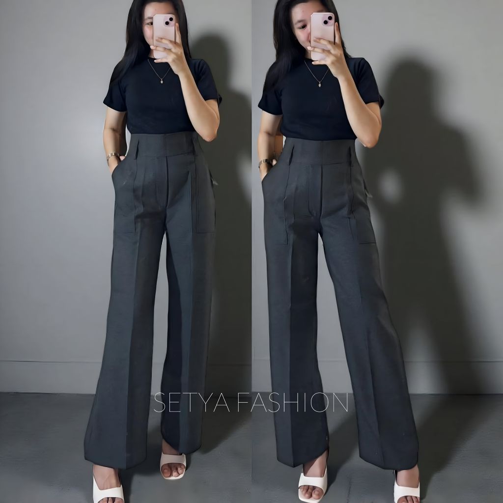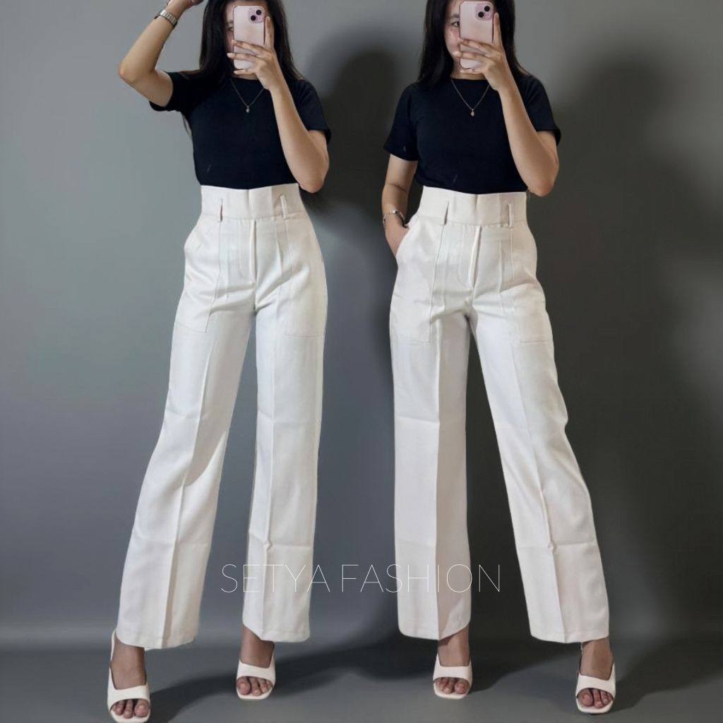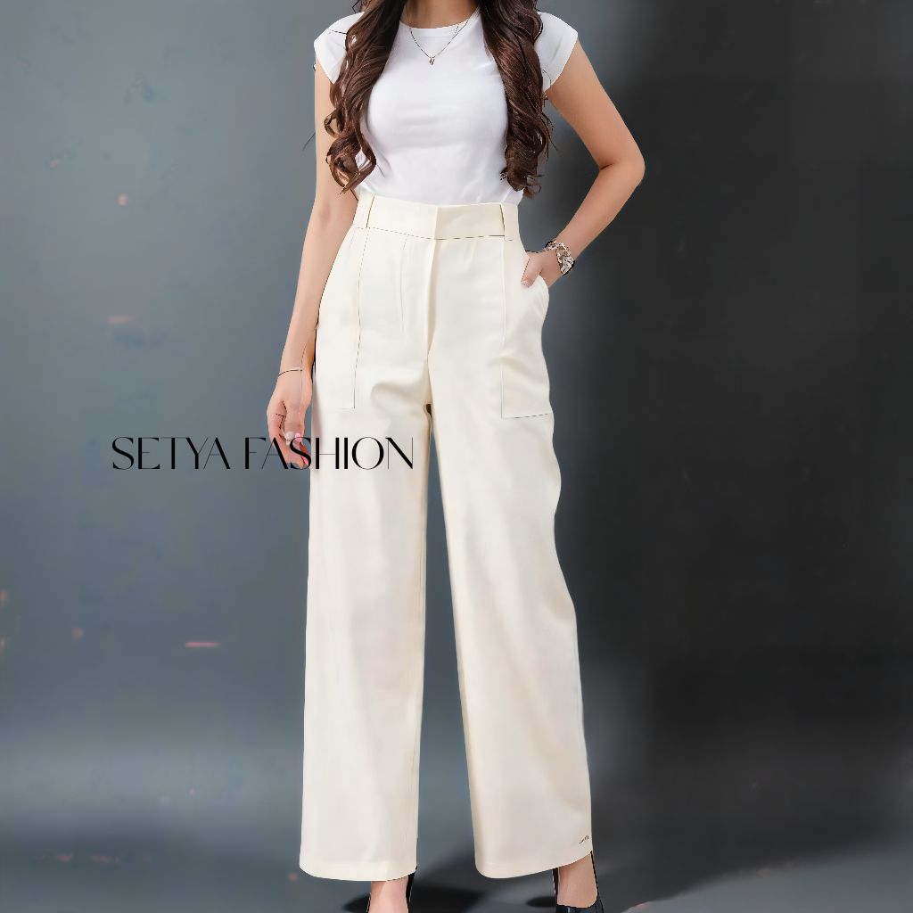 SETYA - Dieora Pants - Celana Kulot Wanita Highwaist Loose Pants Straight Cut Wanita Panjang Premium