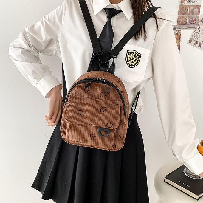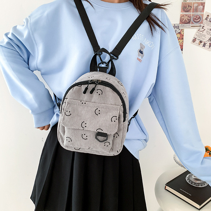 Hayden Ariena Bag Tas Ransel Mini Motif Smile Mini Bkpk Korduroi Stylish - HYB28D