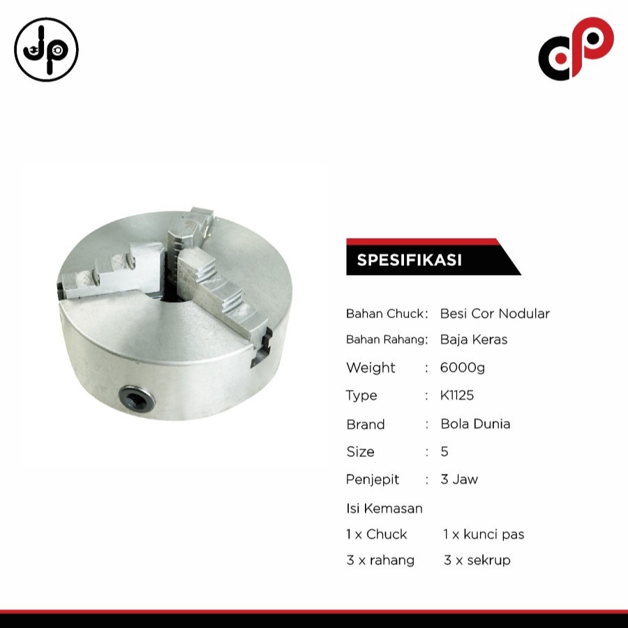 Chuck Bubut 5" (3 Jaw)| Claw Bubut | Catok Kepala Bubut (BOLA DUNIA)