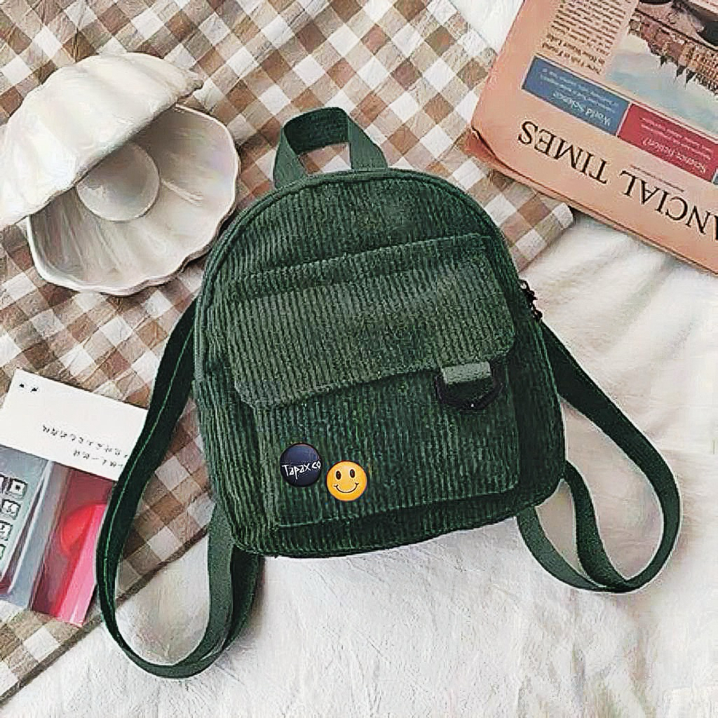 TAPAXCO - Ransel Bkpk Mini Pria Wanita Tas Unisex Corduroy Mina FREE 2 BROSS dan BAG CHARM
