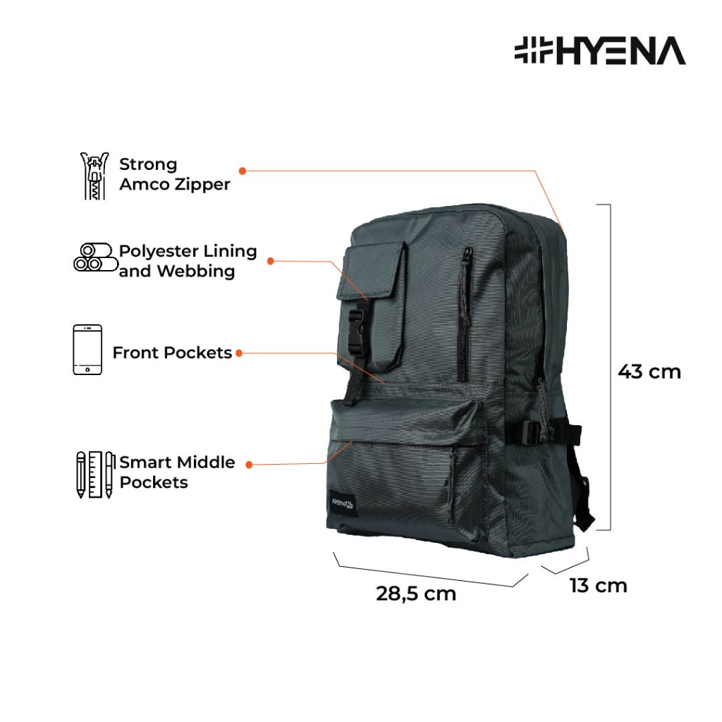 Hyena - Ransel Bkpk Collyn Series Tas Kuliah Polos Pria Wanita Tas Sekolah SMP SMA (KK34)
