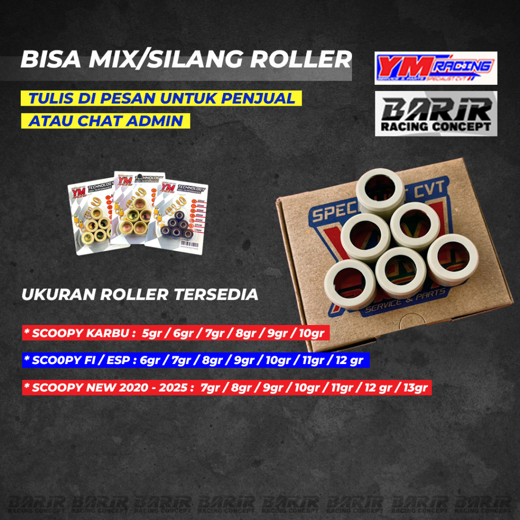 PAKET UPGRADE CVT SCOOPY YM RACING ( KARBU / FI / ESP / NEW 2020-2025 ) 1500 RPM (ROLLER+PER CVT+PER GANDA+RING PULLEY)