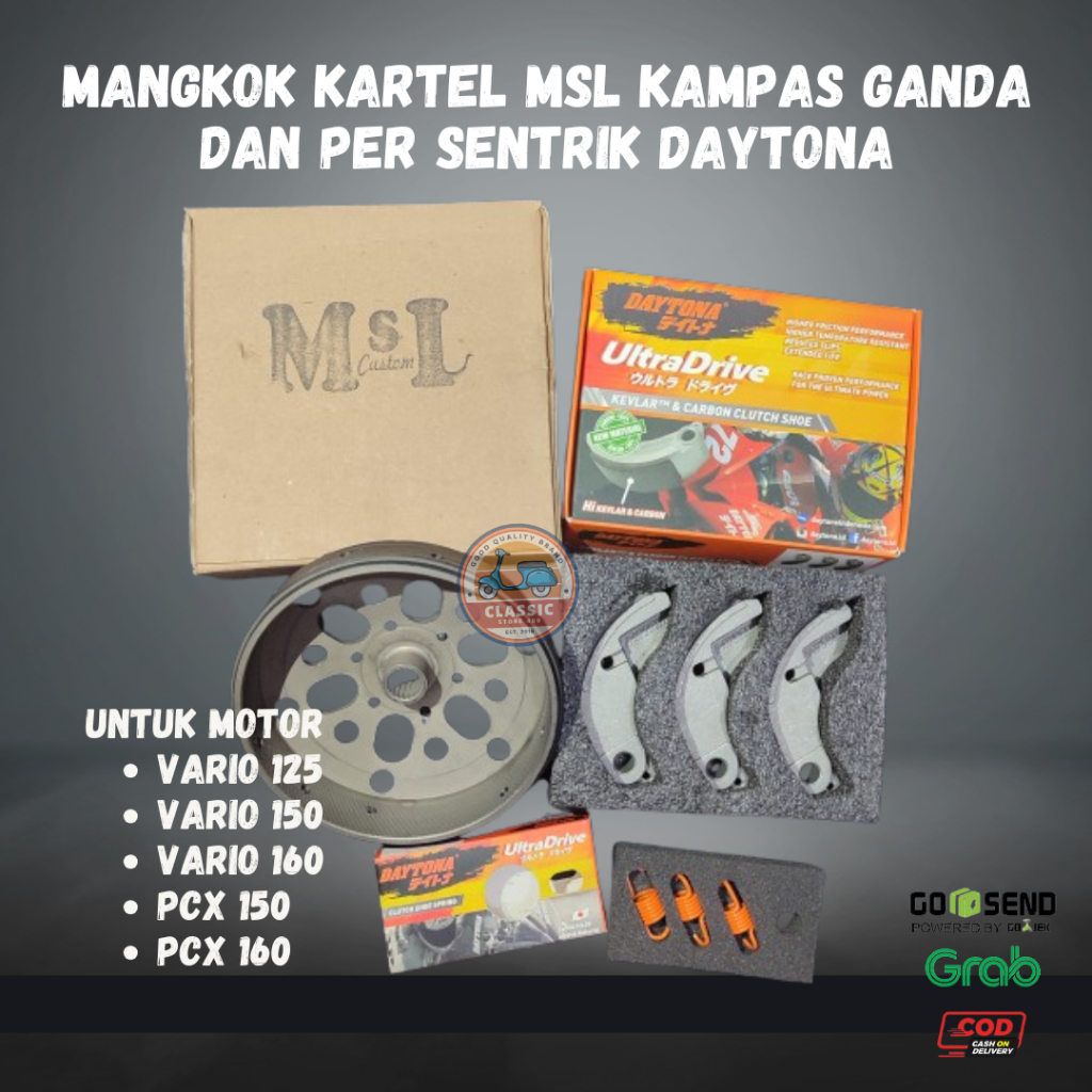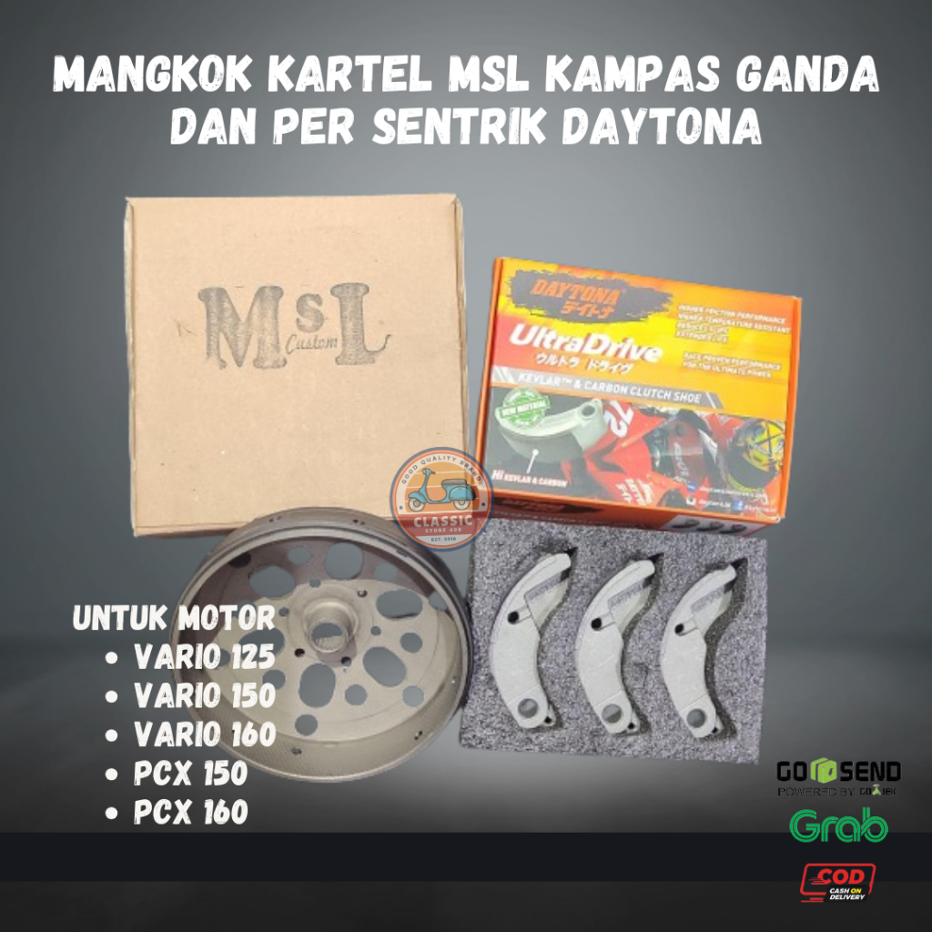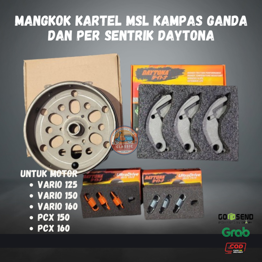 Paket CVT Daytona Vario 125 150 160 PCX 150 160 – Mangkok MSL, Kampas Ganda, Per Sentrik