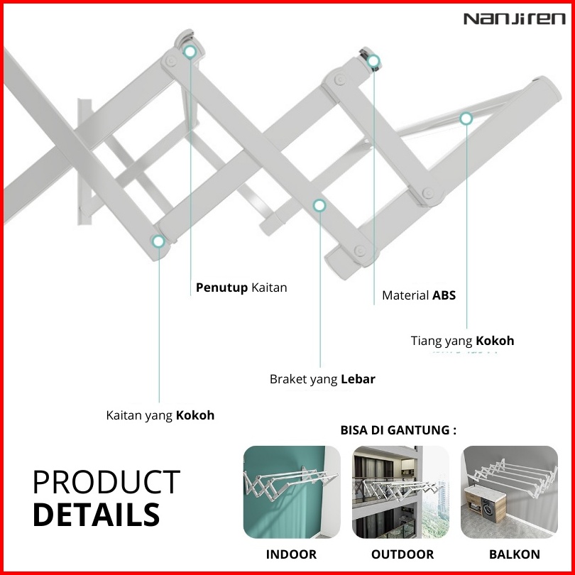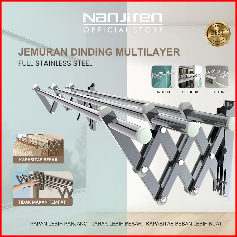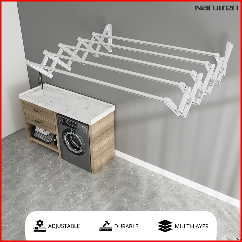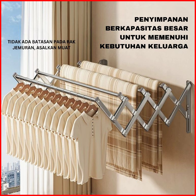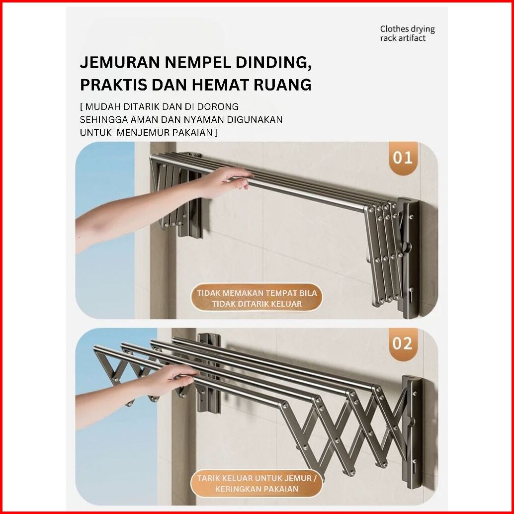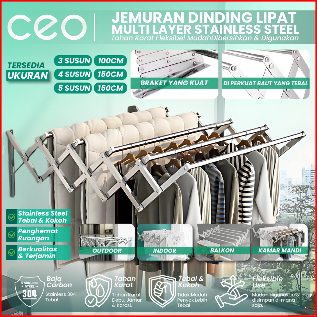 Ceo Jemuran Dinding Stainless Steel Jemuran Tempel Dinding Multilayer Jemuran Pakaian Minimalis Kuat