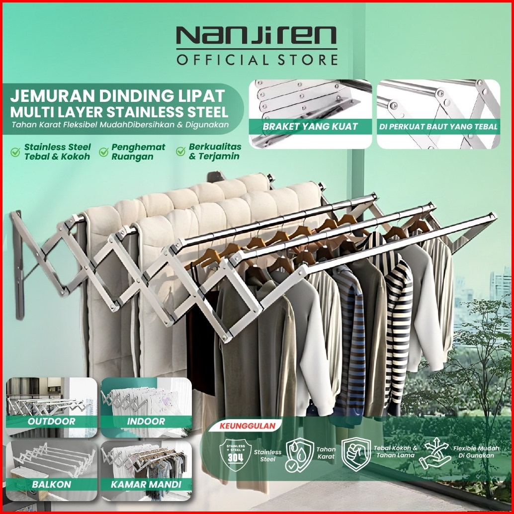 Nanjiren Jemuran Dinding Stainless Steel Jemuran Tempel Dinding Multilayer Jemuran Pakaian Minimalis