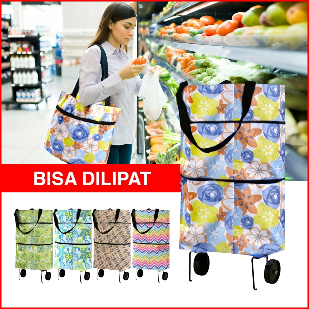 Tas Belanja Lipat Roda Serbaguna Nm-108 Troli Shopping Bag - Motif Random - Ol023
