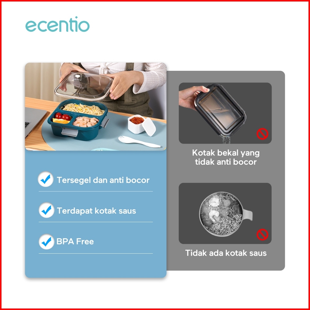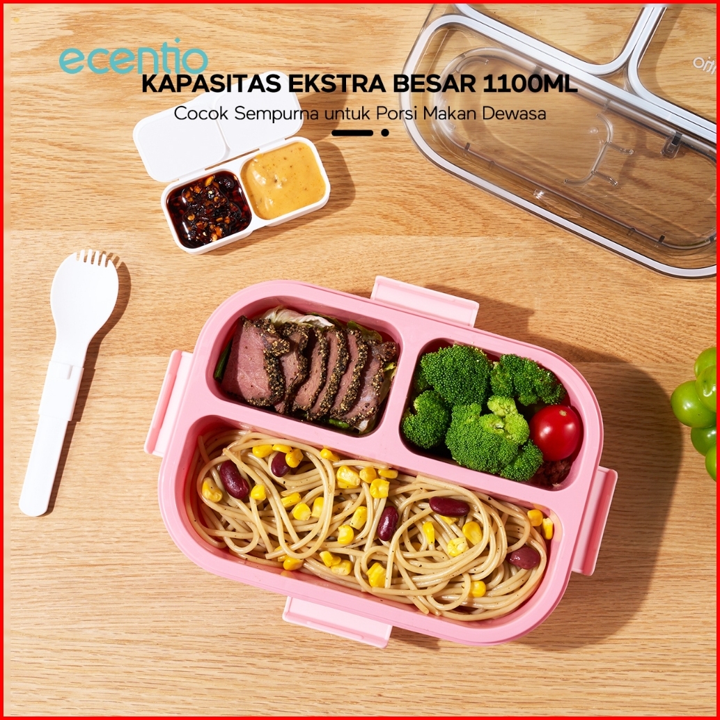 Box Makan 2.0 Harga Lebih Terjangkau Ecentio Lunch Box Set Anak Anti Tumpah Tempat Bekal Aesthetic Tumpah 3 Grid 1100ml