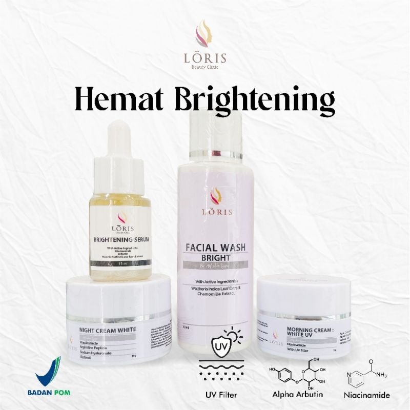 KRIM PEMUTIH WAJAH LORIS PAKET HEMAT WHITENING FOAM BRIGHT MORNING WHITE UV NIGHT WHITE SERUM BRIGHTENING