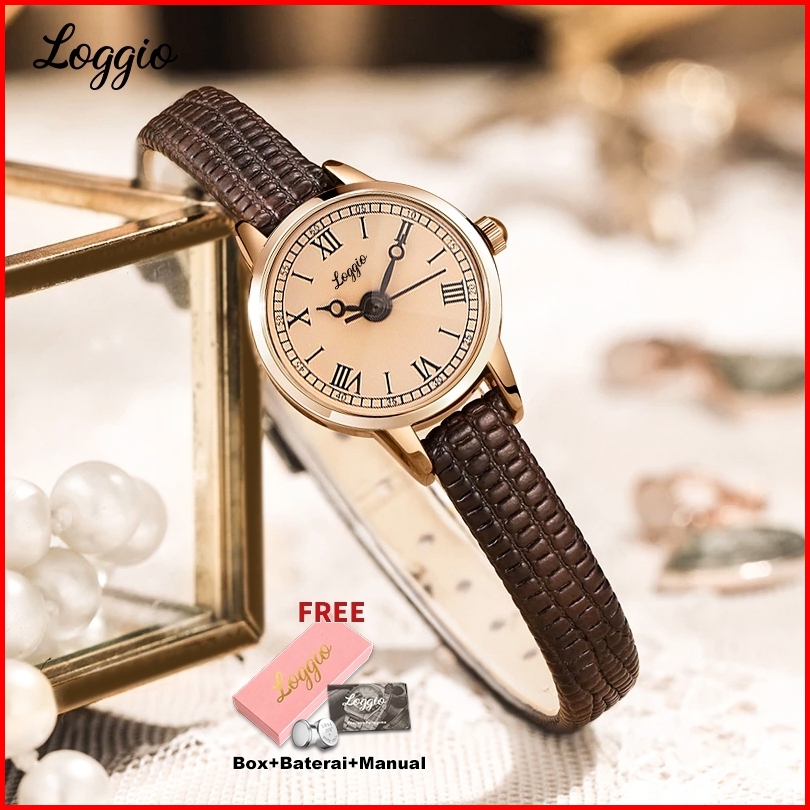 Loggio Jam Tangan Wanita Anti Air Original Korea Retro Fashion Gaya Tali Kulit Terbaru Jam Tangan Cewek Watches