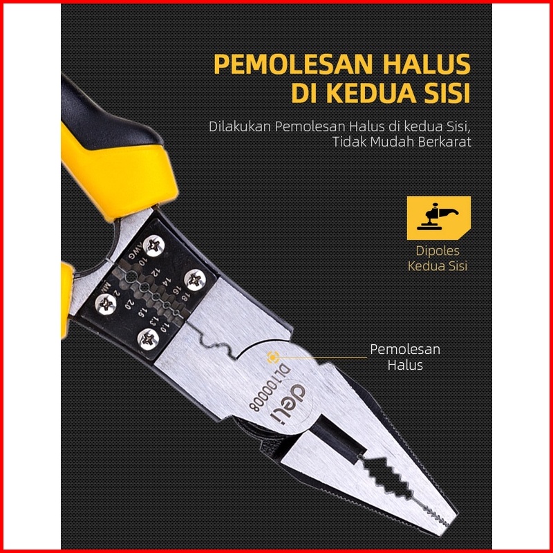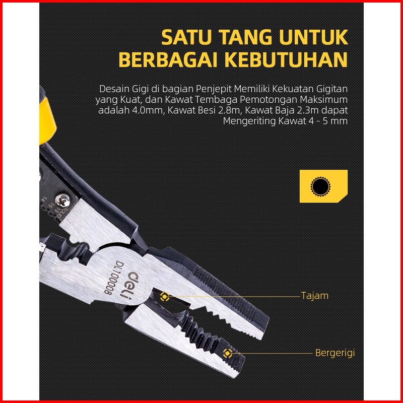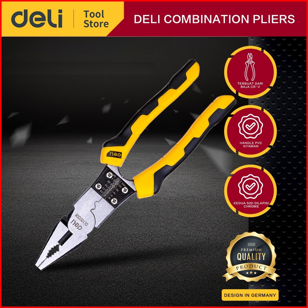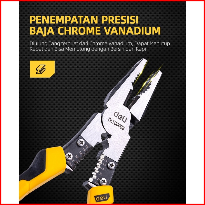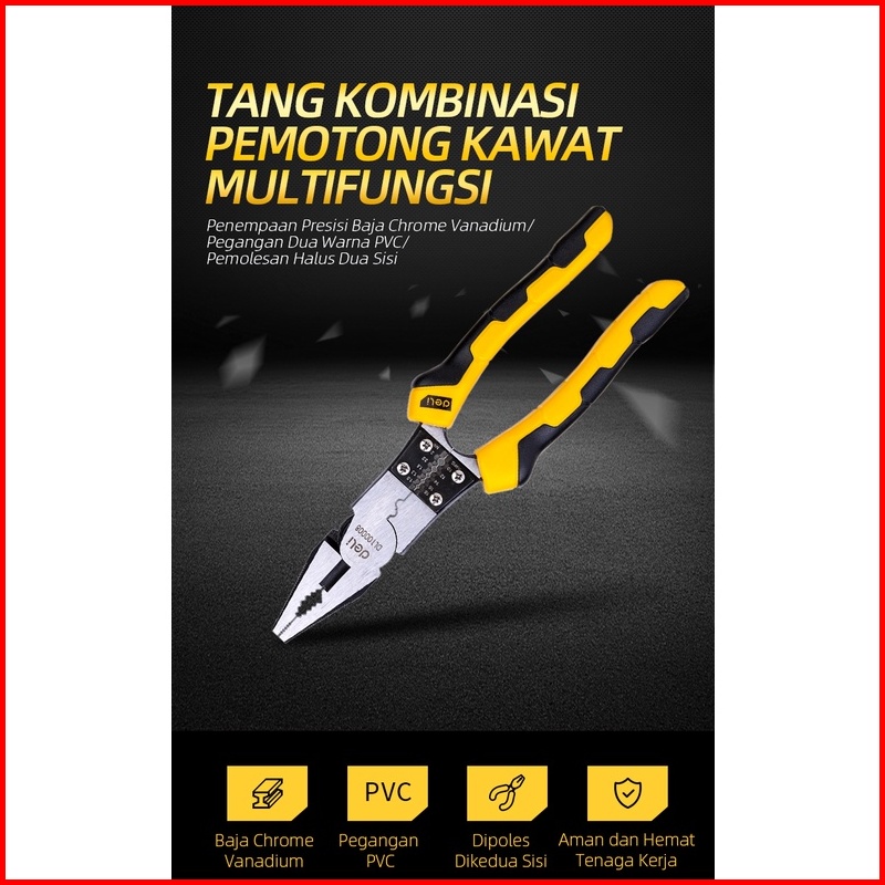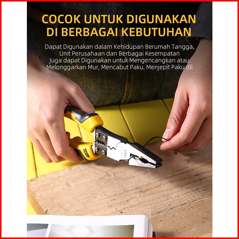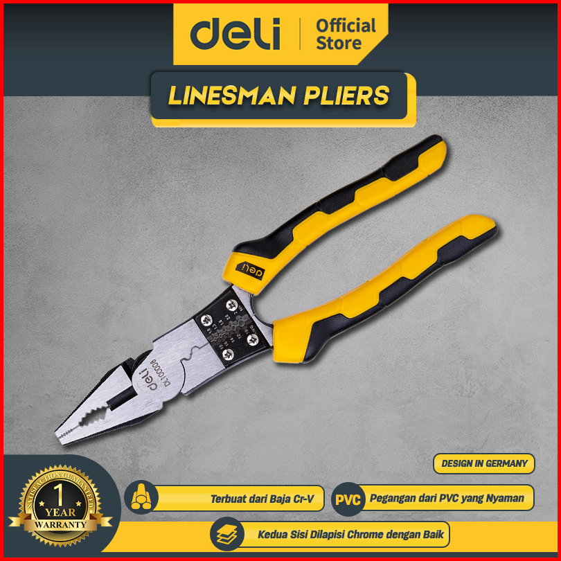 Deli Linesman Pliers Tang Kombinasi Multifungsi 8.5 Inch Chrome Vanadium Pvc Dl100008 Alat Perkakas