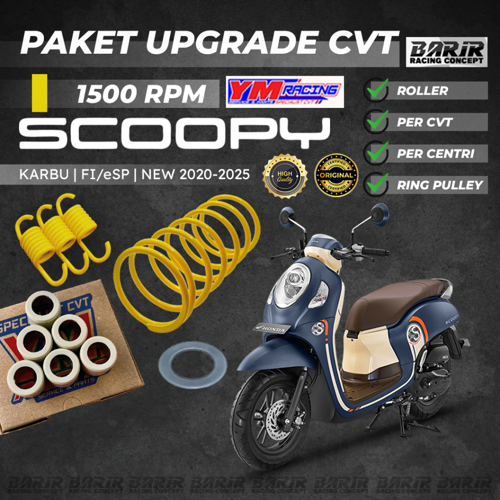 PAKET UPGRADE CVT SCOOPY YM RACING ( KARBU / FI / ESP / NEW 2020-2025 ) 1500 RPM (ROLLER+PER CVT+PER GANDA+RING PULLEY)